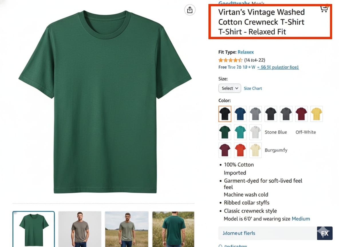 If the parent controls everything, make sure it includes broad, essential keywords. Example: Instead of: “Virtan's Vintage Washed Cotton Crewneck T-Shirt - Relax Fit ” Try: “Virtan's Vintage Washed Cotton Crewneck T-Shirt - Multiple Sizes & Colors Available”
