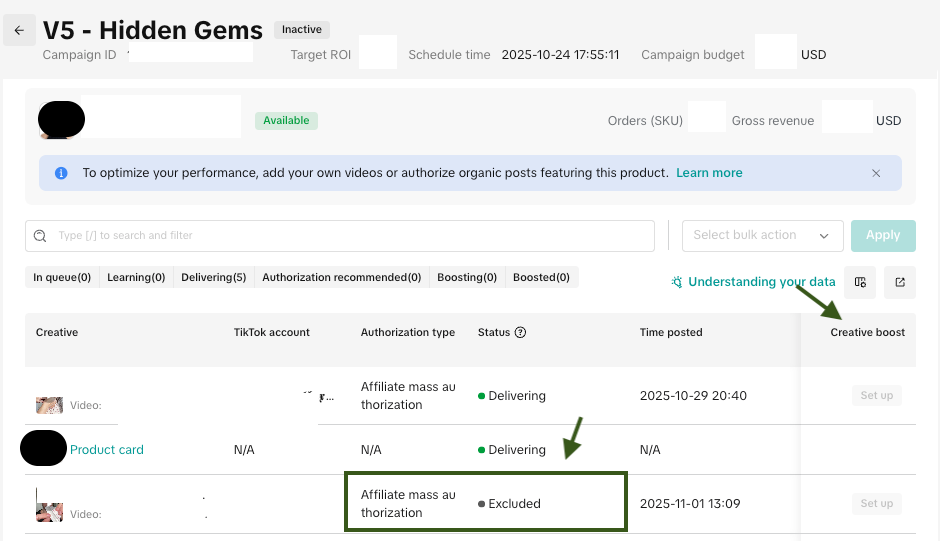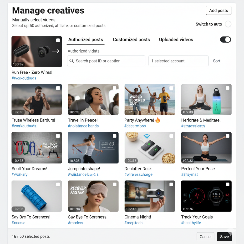 - Manual control options: You can now choose specific creators' videos, exclude poor performers, or boost winning creatives