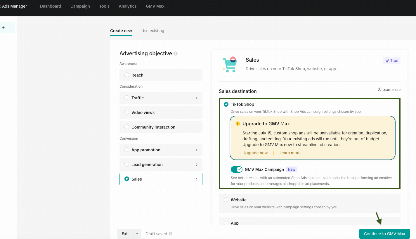 You now have the option to set up Manual GMV Max Campaigns, giving you full control over which assets you want to test. This means you can: